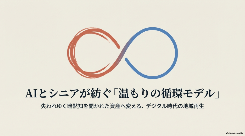 AIは効率化ツールでもありますが、失われゆく暗黙知を形式知へ変える世代間の「温かい翻訳機」にも使えます。コスト削減にばかり目を奪われると、その真価を見失います。長年の経験を現代の共通言語に変換できるAIは、シニアにとって最高の「自己表現の相棒」になり得ます。