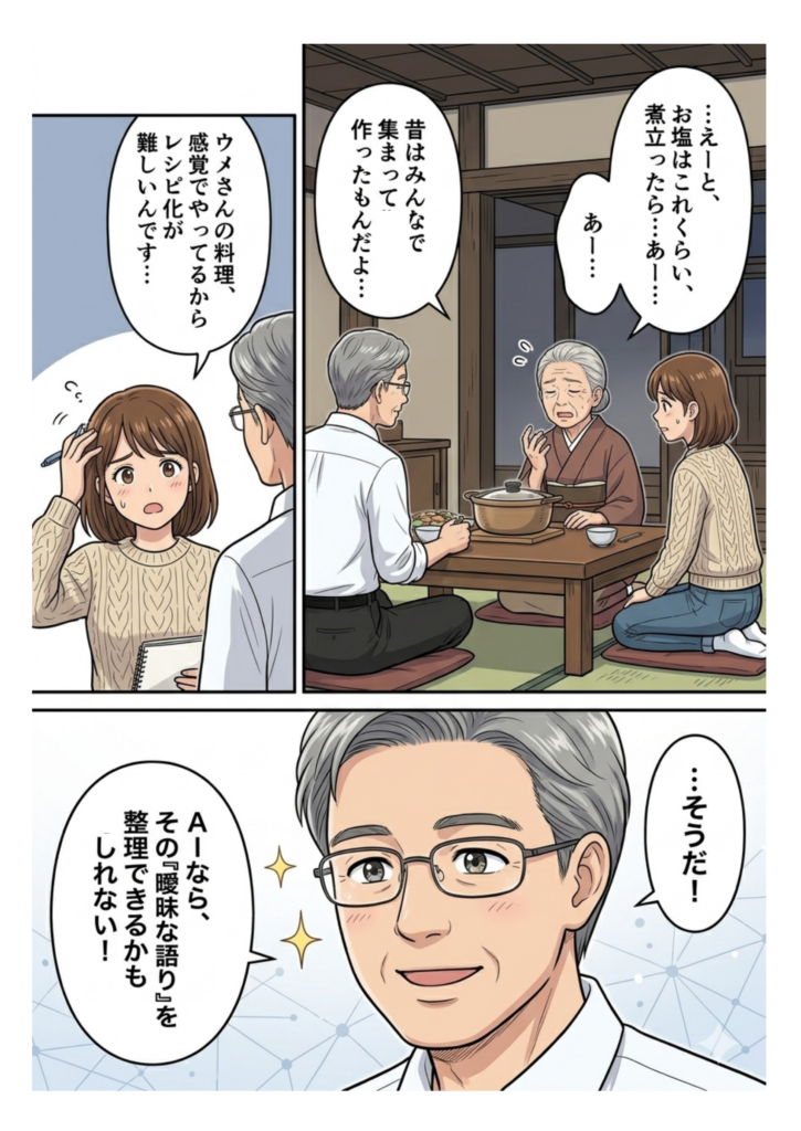 【マンガ解説】消えゆく記憶を未来の資産へ。シニアとAIが紡ぐ地域再生の物語