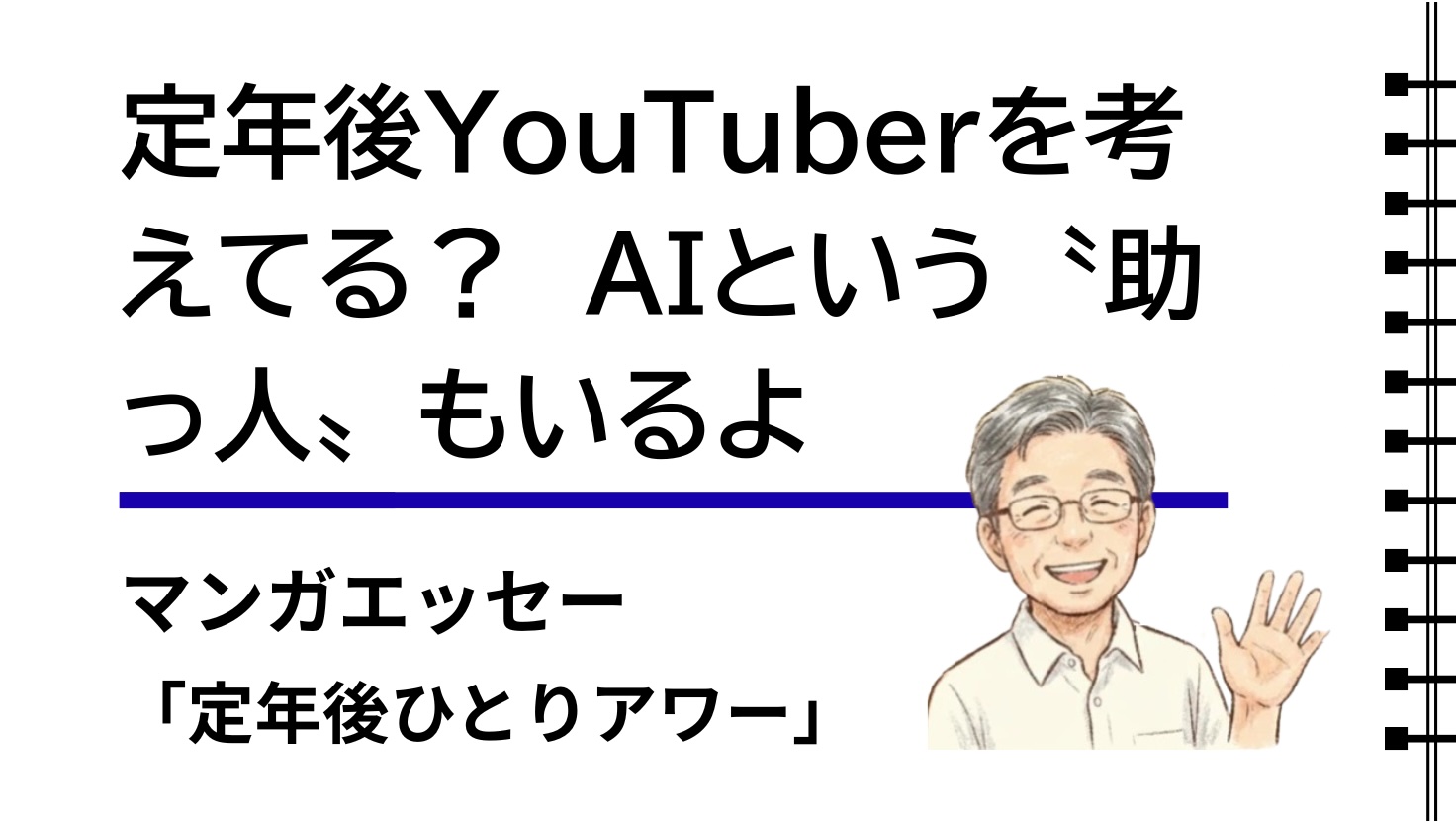 定年後YouTuberのメリットは、何と言っても「社会とつながる」こと。ただ動画を見るだけの受け身な生活から、自分の知識や経験を発信する側へ回る。この結果、誰かの役に立てたり、マネタイズに道が開かれたりするかもしれません。最高の脳トレでもあり、孤独への特効薬になったりもします。